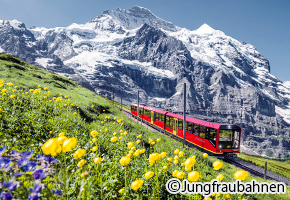 ヨーロッパで一番標高が高い鉄道駅ユングフラウヨッホへ。駅からの通路は人気のスフィンクス展望台へと続きます。最大勾配は25度、のどかな丘陵地帯から氷河までさまざまな景色をお楽しみいただけます。
