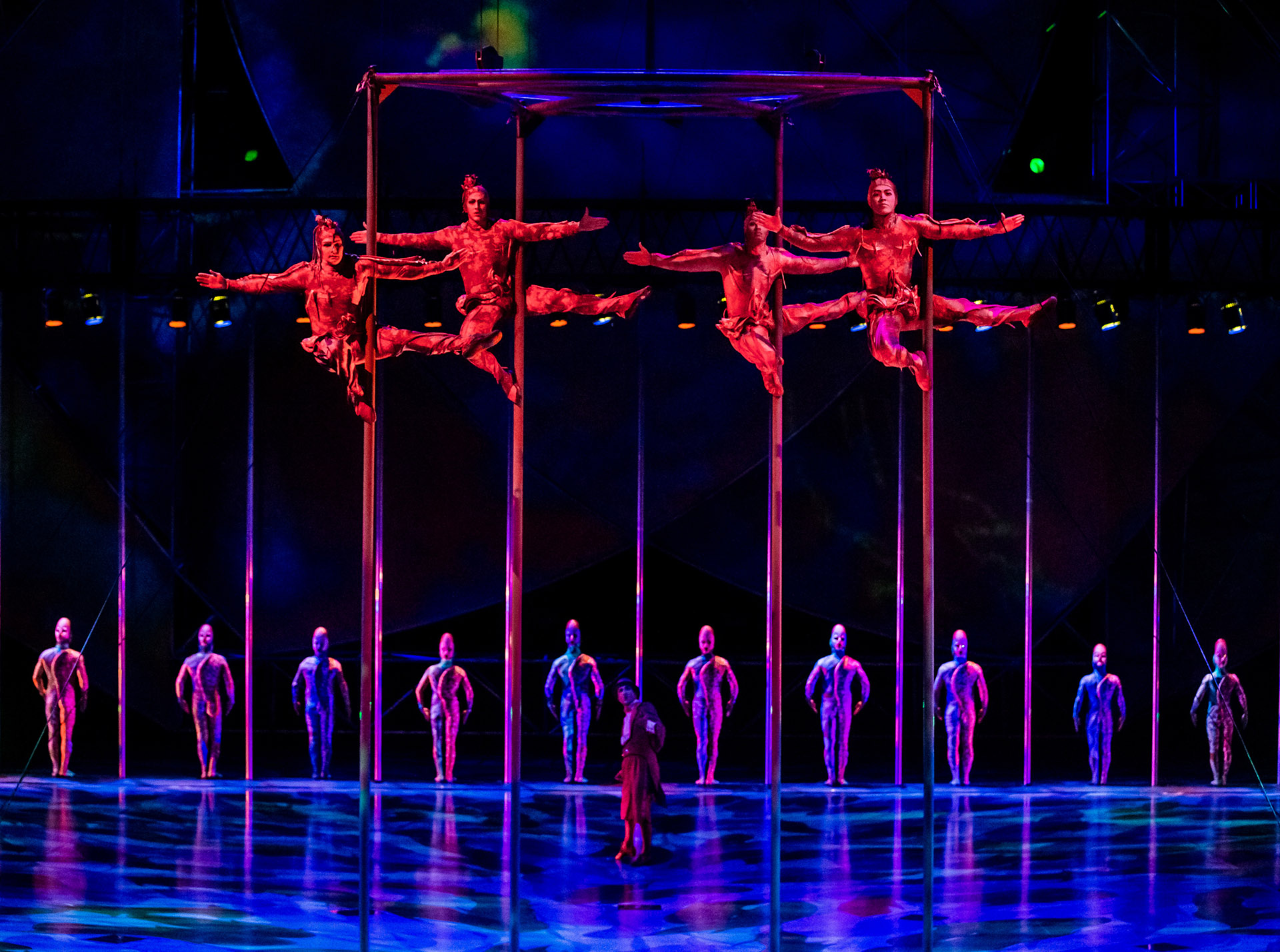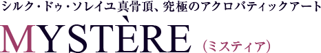 何億もかけた舞台装置を持つ専用シアターのショー(“O”やKÀ)と違い、このMYSTEREは、種も仕掛けもない平坦なステージで繰り広げられるため、鍛え抜かれた超人による奇跡のパフォーマンスが際立ちます。芸術的な演出と相まって他にない深い感動を味わえる事で、公演開始から20年以上経つにもかかわらず、一向に衰える事のない高い人気を誇ります。