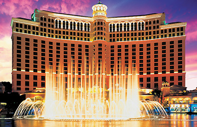 「オーシャンズ11」など数多くの映画の舞台にもなったベラッジオ。正面のコモ湖に仕掛けられた1,000基ものハイテク噴水が音と光りに合わせてダンスします。BGMはオペラや人気ミュージカルナンバーです。いまやラスベガスのシンボルともいえる景色です。