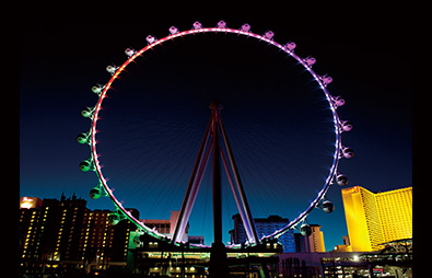 世界で最大の観覧車(2016年9月現在)“ラスベガス・ハイ・ローラー”が、遂に一般営業を開始しました。近代ラスベガスの新たな顔の一つなることが期待される観覧車は、最大40人収容のキャビン28台が取り付けられており、1周30分を掛けてラスベガスの絶景をお楽しみいただけます。