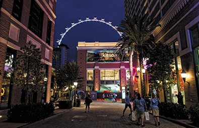 メインストリートであるストリップの中心部付近にあるショッピングゾーン。世界最大級の観覧車『ハイローラー』もこちらにあります。買い物をしたついでに世界一の夜景を堪能してみては。