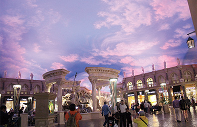 シーザース・パレスのカジノに隣接した高級ブランド満載のショッピングモール。ラインナップは「ルイ・ヴィトン」や「ブルガリ」、「クリスチャン・ディオール」と世界に名だたる一流ブランドがずらり。ローマ時代の街並みをイメージしたゴージャスな建築デザインも高級感たっぷり。青空から夕景へと変化していく天井も必見です。