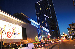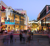 2001年にオープンした屋外型ショッピングモール。1930~40年代のL.A.を再現した街並みをのんびり走るトロリー、オープンカフェが並ぶ噴水広場や映画館もあり、賑やかな雰囲気が楽しめます。もちろん、バーニーズやフォーエバー21、バナナ・リパブリックなどの人気店が揃い、ショッピングも満喫できます。