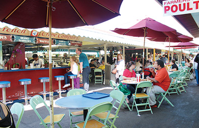 1934年にトラック販売から始まったロサンゼルス一古いファーマーズ・マーケット。現在はイタリアンに中東料理、韓国BBQなどの世界各国の料理やスイーツが楽しめる屋台を中心に、100店舗以上の店が軒を連ねる屋外フードエリア。アメリカでは珍しく、ビールやワインも楽しめるとあって、終日賑わう人気のスポットです。