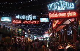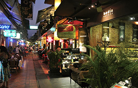 オールドマーケット北側に位置する通りで、外国人観光客向けのオシャレなレストランが並びます。夜は多くの観光客で賑わい、シェムリアップの別の姿を楽しめます。