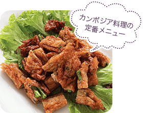 エビや白身魚などのすり身を揚げたカンボジア風さつま揚げ。