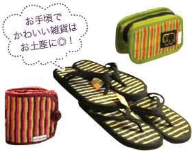 お財布やサンダルなど、カワイイ雑貨が低価格で手に入るのも魅力です!