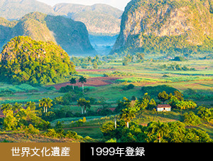 ビニャーレス渓谷ハバナ市内から車で約4時間、オルガノス山脈にある渓谷は丸い小さな山がポコポコ並ぶ独特な景観が楽しめる。 |