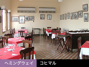 ラ・テラサコヒマルの海岸から10分ほど歩いたところにある、ヘミングウェイが通ったレストラン&バー。壁にはヘミングウェイの写真が多数飾られている。 |