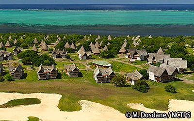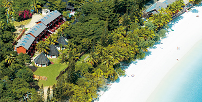 ヌメアからボートで20分程の場所に浮かぶメトル島にあるリゾートホテル。長い桟橋とラグーンにせり出した大きなウッドテラス、そして整然と建ち並ぶ三角屋根の水上コテージが魅力的です。