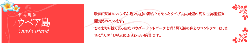 ニューカレドニアが『天国に一番近い島』である理由とは?「天国に一番近い島 ニューカレドニア」。そう呼ばれるようになったのは、今から約50年以上前、作家・森村桂の旅行記『天国にいちばん近い島』にニューカレドニアが描かれたことからです。当時、ベストセラーとなったその作品は、のちに映画化もされ大ヒットしました。世界遺産認定のラグーンに多種多様な海洋生物、手付かずの山や森に約3,000種以上にのぼる固有動植物を育むニューカレドニアは、まさに生き物たちにとっての“天国”。さらにこの島では、多彩なアクティビティーで大自然の奇跡を体感できるだけでなく、フランス領ならではの洗練された街並み、豊かな美食、カナック(メラネシア系先住民族)たちの伝統文化など、さまざまな魅力を堪能することができます。 また、「天国に一番近い島 ニューカレドニア」は、日本から直行便で約8時間半。日本に一番近いフランスでもあります。時差2時間で体に負担も少なく、年間平均気温約25度の過ごしやすい気候、明治・大正期に日本からの多くの移民が渡ったこともあり親日国としても知られ、治安の良さからも快適な滞在が楽しめるデスティネーションです。 ここは多彩な体験を通じて自分ならではの“天国”を見つけられる島。「天国に一番近い島 ニューカレドニア」と呼ばれる由縁は、まさにそこにあるのです。