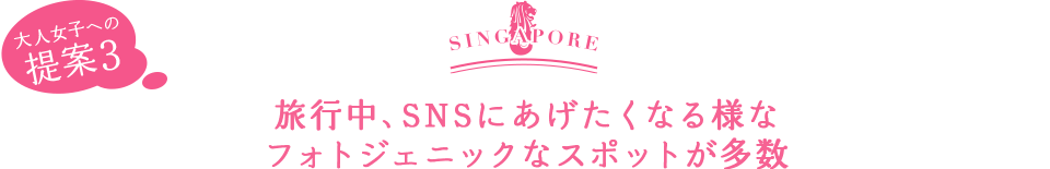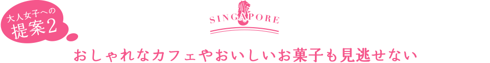 有名なマリーナベイサンズだけではなく、おしゃれなスイーツが詰まったハイティや、おいしい伝統お菓子、アラブストリートで自分好みに調合できる香水など色鮮やかなスポットが盛りだくさん。