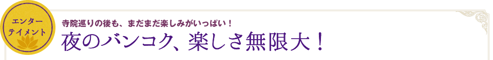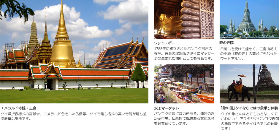 観光にショッピング、グルメにナイトライフなどバラエティに富んだスポットが充実し楽しめる、エネルギーに満ちたタイの首都・バンコクへ