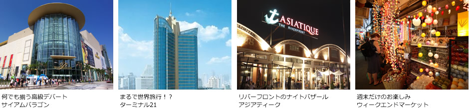 タイ雑貨の宝庫マーケットや、お洒落なファッションアイテムが揃う最新ショッピングモールなど、