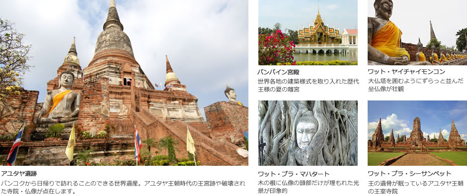 郊外の世界遺産の遺跡や昔ながらの水上マーケットなど、見どころが盛りだくさん!