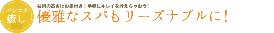 ハイレベルな施術を驚くほどリーズナブルに、本格的なスパ体験が叶うバンコク。