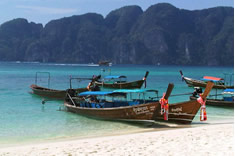 プーケットの南48kmに位置するピピ島は、小さな6つの島が集まって形成されている。プーケットからは大型船で約2時間。ピピ島の中で最も有名なのが、映画『ザ・ビーチ』で使われたピピ・レイ島にあるマヤビーチ(船上観光のみ)。その周囲には、バイキングケイブと呼ばれる洞窟などがある。ツアーにはシュノーケリングも含まれており、船からサンゴ礁の美しい浅い場所で行われる。ピピ島の透き通ったエメラルドグリーンの海と色とりどりのアンダマン海の熱帯魚が見ることができます。また、鋭い傾斜で聳え立つ岩肌もピピ島の神秘的な景観を作り出しており、訪れた人を魅了しています。
