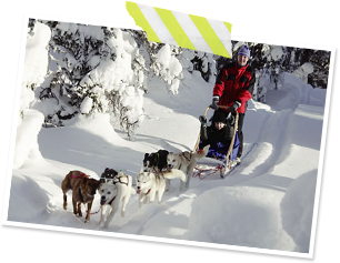 犬たちの息づかいを感じながら、雪原を突っ走る爽快感を体験! スピードがでるのでスリルも満点。2人用で6~8頭の犬がそりを引っ張ります。犬たちとの記念撮影も楽しみ。