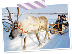 トナカイの引くそりに乗って雪原の中をゆっくりゆっくり進みます。 ラップランドの景観を楽しむには最適のアクティビティ。お子様やご年配の方でも安心して参加いただけます。