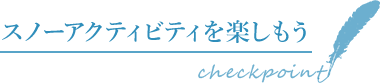 | 上着 | 風を通さないスキーウェアやダウンジャケットを腰の下まであるものを。 上着の下は保温性があり、かつ暖かい室内で脱ぎ着しやすいものを。 フリース等のスポーツウェアや厚手のカーディガンが便利です。 |