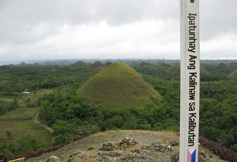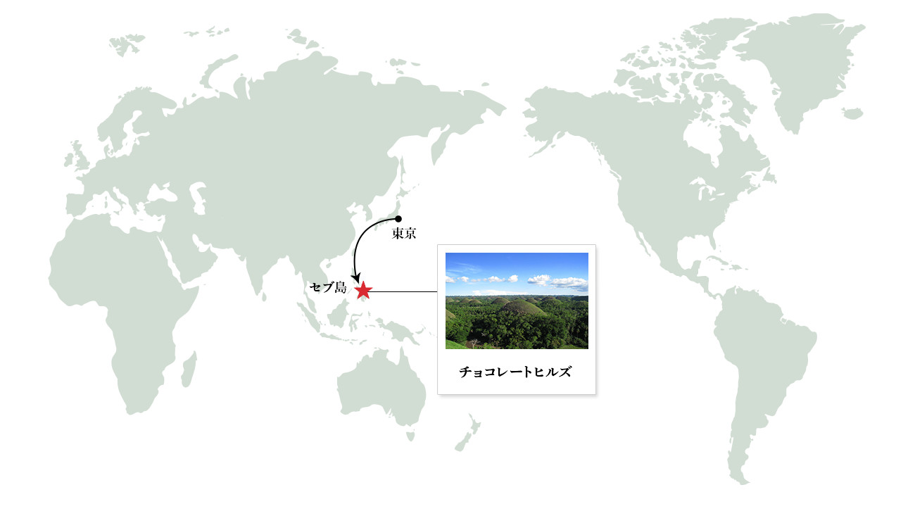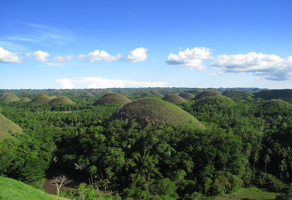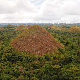 フィリピンのセブ本島とレイテ島にちょうど挟まれる位置にあるボホール島。そのほぼ中心に位置するチョコレートヒルズは、高さ30mほどの円錐形の丘が1,000個以上も連なるその不思議な風景で有名です。