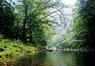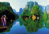 索渓峪(さくせいよく)風景区に位置する「仙女が住む池」と言われる神秘的な湖。木樹が茂っている山々に囲まれ、湖面も紺碧の美しい景勝地です。