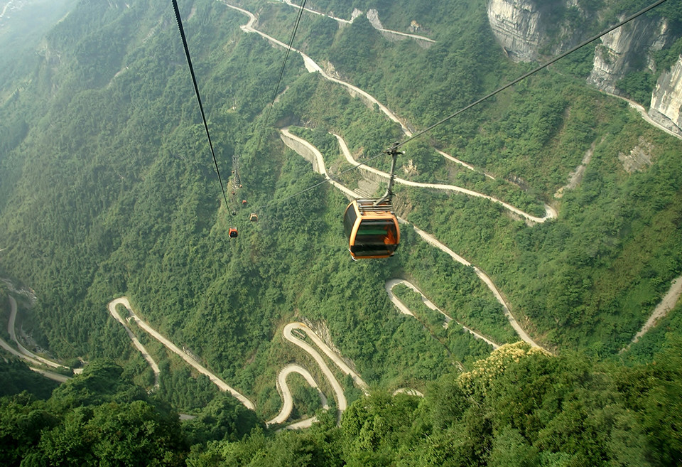 総面積は約264km²にも及び、高さが200mを超える岩の柱が3,100本以上も林立する岩山の世界は一見荒涼とも見えますが、麓には渓流が流れ豊かな森林が広がり様々な生態系を育んでいることから、「仙境の縮小版」とも呼ばれます。