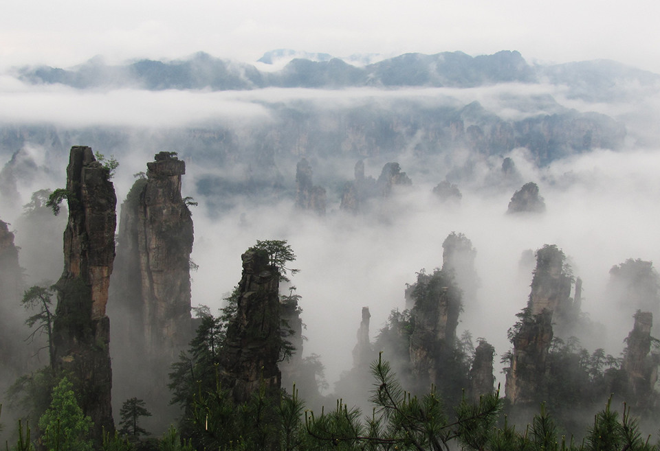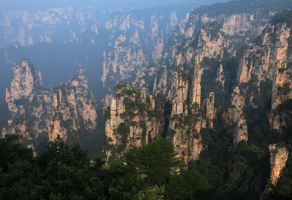 標高約1,000mに位置する、武陵源の西北に広がる石柱群。天下第一橋や迷魂台など、武陵源を代表する景色が広がります。映画アバターの「ハレルヤ山」の原型となった場所。