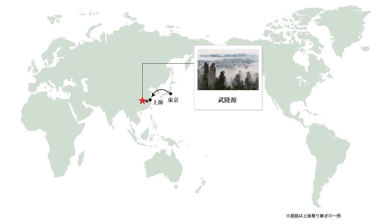 武陵源を目指すには、張家界へ。日本からは北京や上海などの都市で乗り継ぎます。