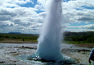 ゲイシール地区の中でも、最も激しく活動しているのがストロックル間欠泉。お湯がボコボコと沸き立つ地面の穴から突然、5分~10分毎に最大30m近くになる温泉の柱が噴き上がります。