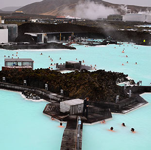 首都レイキャヴィークから車で約45分の場所にある、地熱の国アイスランドならではの施設。50mプール約4個分という露天風呂は世界最大!地熱発電所が汲み上げた地下熱水を再利用しています。もともと70℃以上の熱水は38℃程度に調節され、ゆったりとくつろげる温度。ミネラルが豊富なので美白効果もあります。