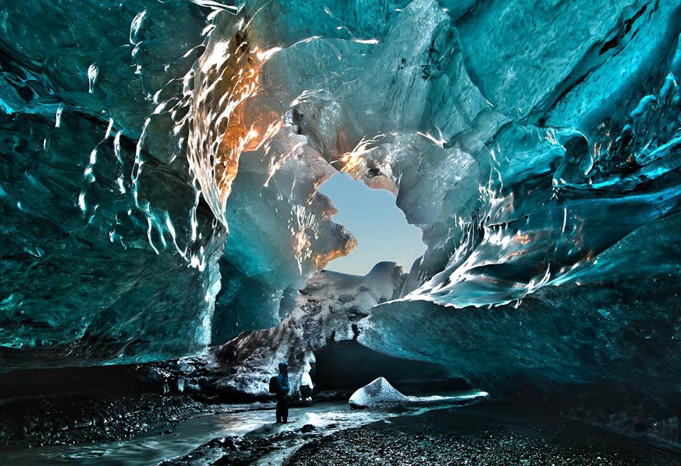 氷河は少しずつ流れているため毎年洞窟のできる場所も大きさも異なり、見学にはプロのガイドの案内が必要です。また氷河が溶ける夏場は入場ができません。冬の間だけ楽しむことができる神秘的な青の絶景です。