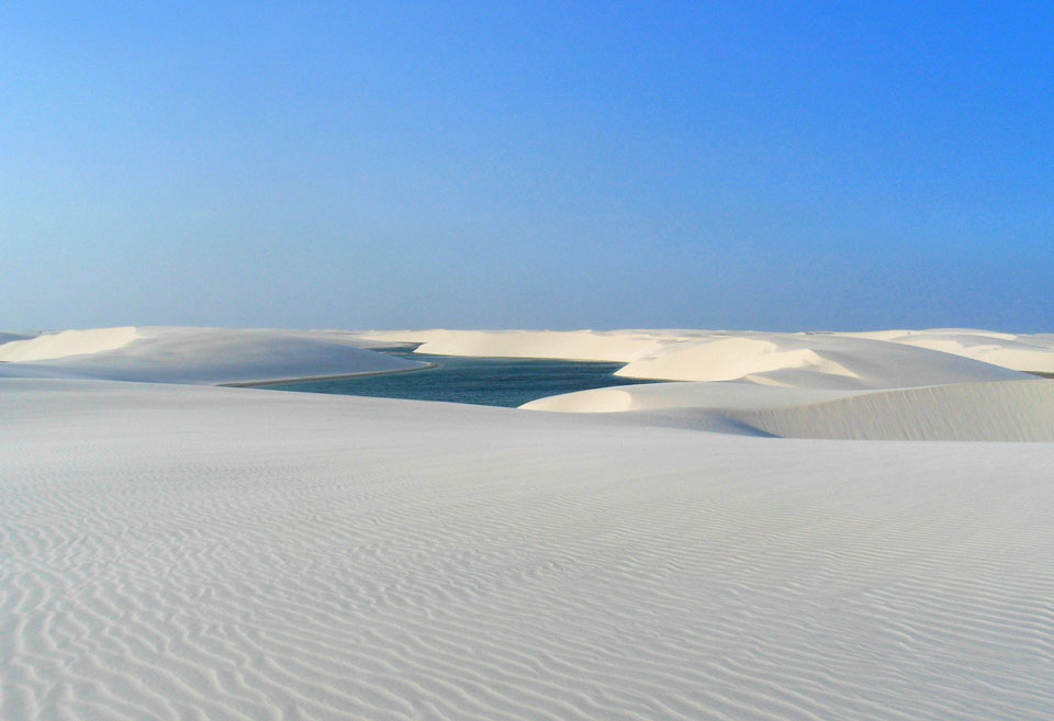 ブラジルの北東部大西洋岸のマラニャン州にあるレンソイス・マラニャンセス国立公園には、美しい純白の大砂丘が広がっています。レンソイスとは、ポルトガル語で「シーツ」の意味。真っ白なシーツのような姿から、その名がつけられました。