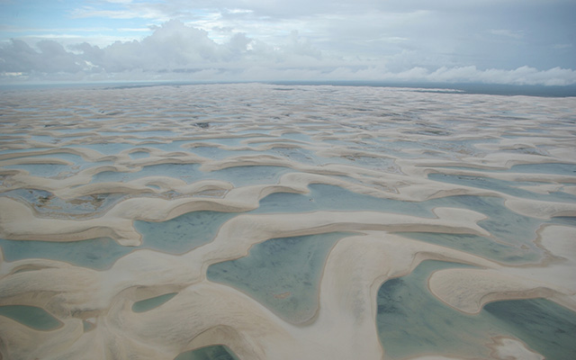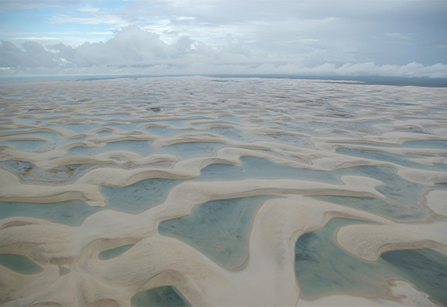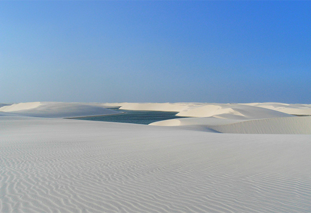 ブラジルの北東部大西洋岸のマラニャン州にあるレンソイス・マラニャンセス国立公園には、美しい純白の大砂丘が広がっています。レンソイスとは、ポルトガル語で「シーツ」の意味。真っ白なシーツのような姿から、その名がつけられました。