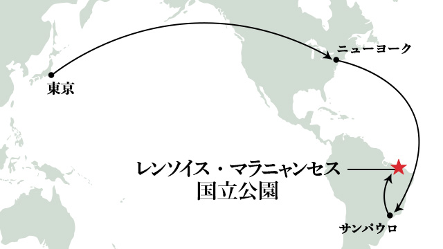 サンパウロから更に空路でサン・ルイスに約3時間半かけて向かい、サン・ルイスの街からは、バスでレンソイス・マラニャンセス国立公園に最も近いバヘリーニャスへ。所要時間は約4時間。