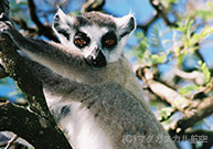 マダガスカル固有種のサル。トレードマークの縞模様のしっぽは体長より長く約50cm~60cm。チャイロキツネザルとは逆に、多くは地上で活動します。