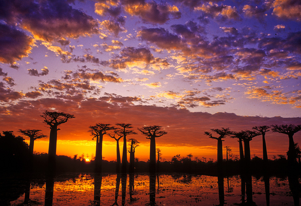 日中でも圧倒される不思議な風景ですが、特に人気なのが夕景の並木道です。夕陽に染まる一帯に、バオバブの不思議なシルエットが続く絶景はマダガスカル島で必見の風景です。