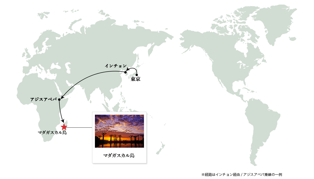 アフリカ東海岸のインド洋に浮かぶ、日本の約1.6倍の面積を持つ世界第4位の大きさの島、マダガスカル共和国。島に生息する動植物の約8割がマダガスカルのみに生息する固有種であるという、特異な生態系を持っています。