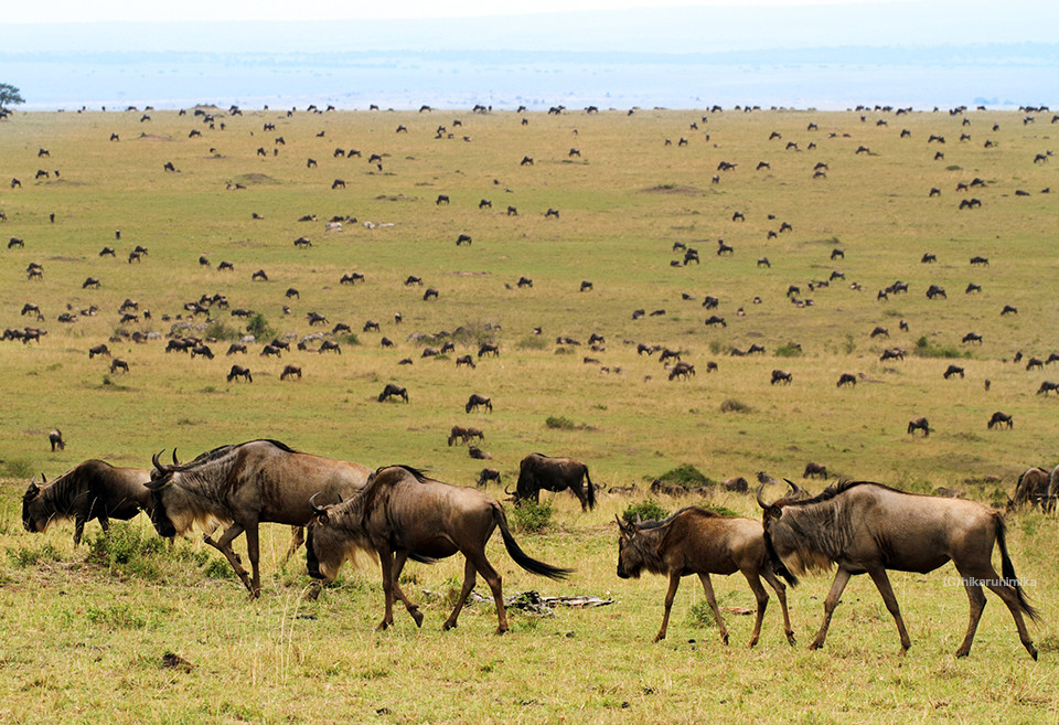 動物天国のマサイマラ国立保護区でも特に有名なものが、毎年7月~10月にかけて見られる「ヌーの大移動」です。およそ130万頭にもなるヌーの集団が、新しい草を求め一斉に移動する大迫力の光景は圧巻。