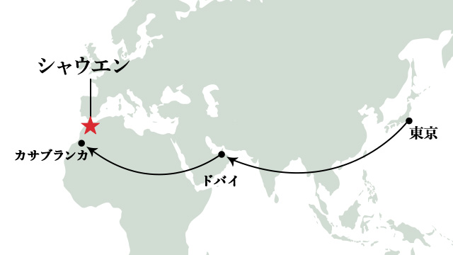 シャウエンを目指すには、まずモロッコの空の玄関口であるカサブランカへ。おすすめは運航本数の多いエミレーツ航空を利用した中東の都市ドバイからの乗り継ぎ。