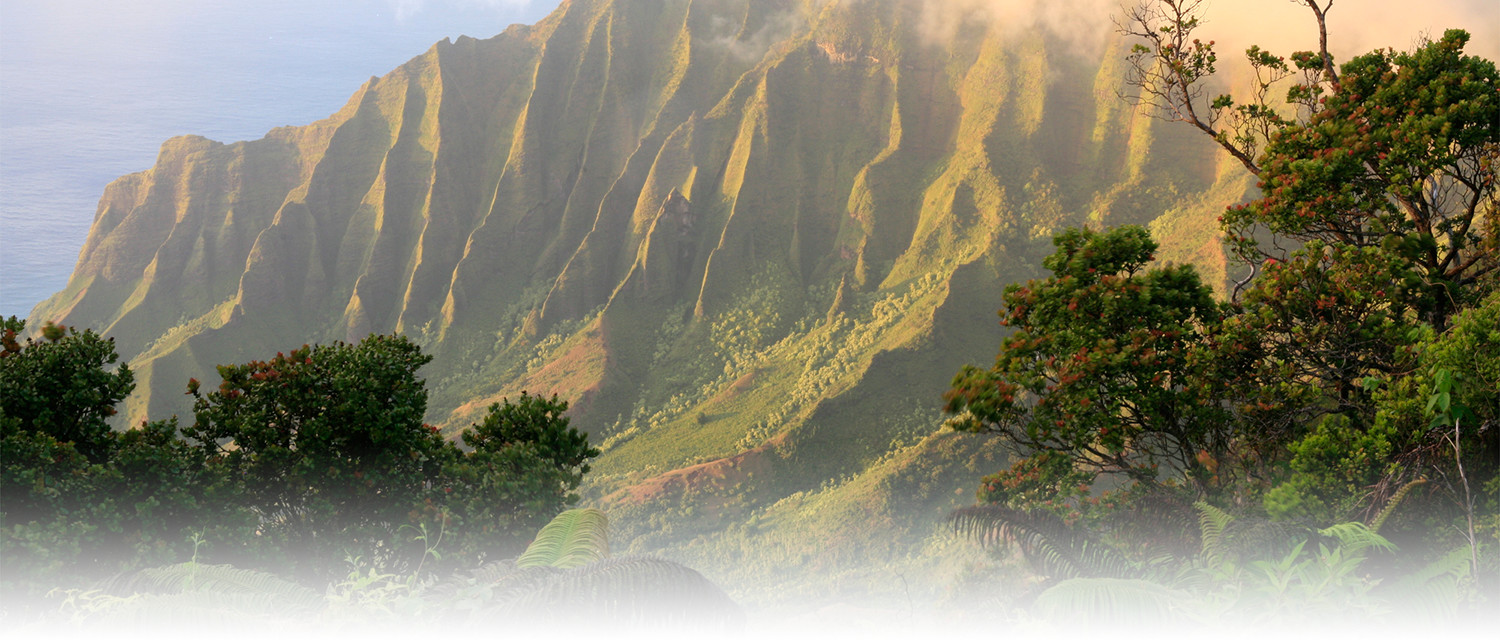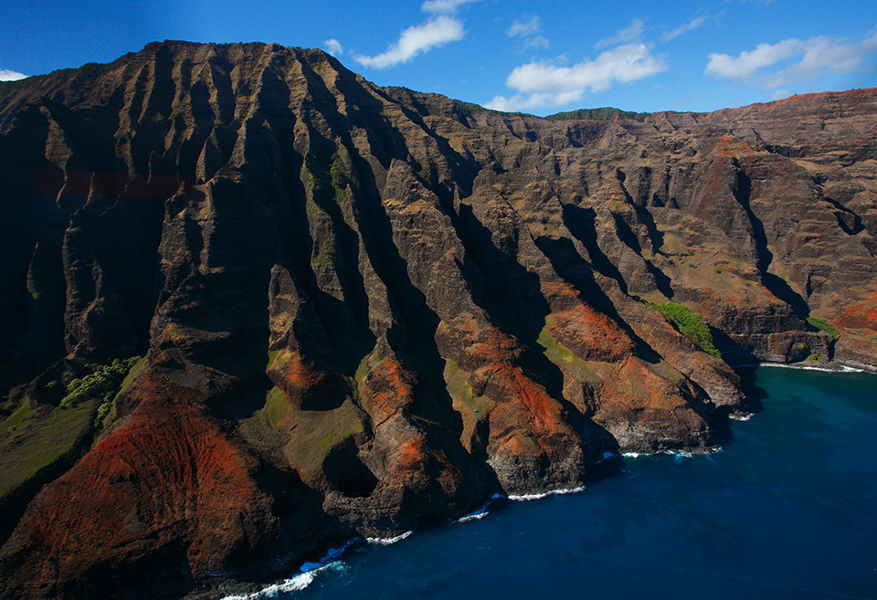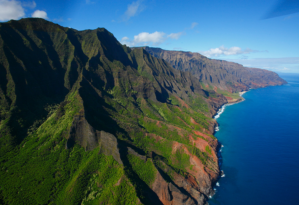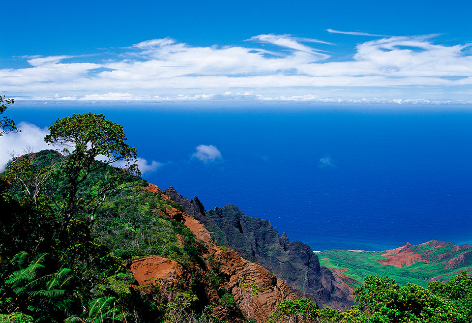 ハワイのカウアイ島は、今から約500万年前にハワイ諸島の中で最初に誕生したといわれています。島の誕生から長い時間の中で起こってきた隆起や風雨の浸食により作りだされたのが、全長25km・標高差約1,000mもある断崖絶壁の海岸線「ナ・パリ・コースト」です。
