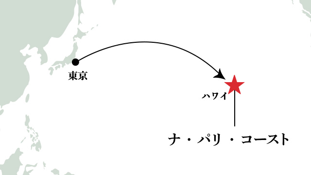 ナ・パリ・コーストを目指すには、まずハワイのカウアイ島へ。ホノルルから国内線で約30分~50分でカウアイ島に到着します。