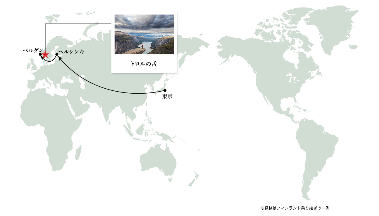 トロルの舌を目指すには、まずノルウェー第二の都市ベルゲンへ。日本からは基本的にヨーロッパで1回乗り継ぎが必要です。