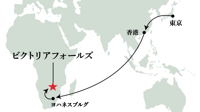 ビクトリアフォールズを目指すには、まず南アフリカのヨハネスブルグへ。アジアかヨーロッパの都市の乗り継ぎで約19時間~かかります。