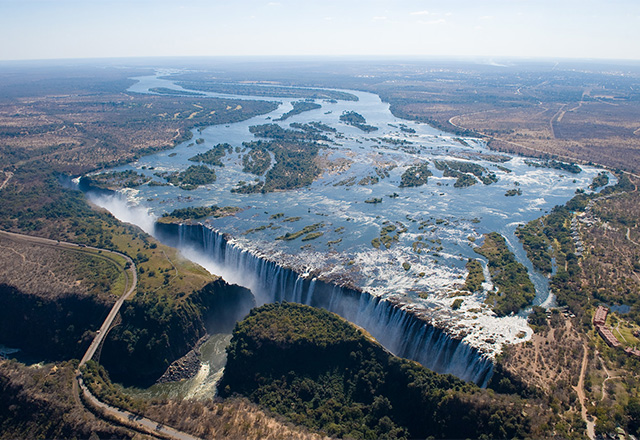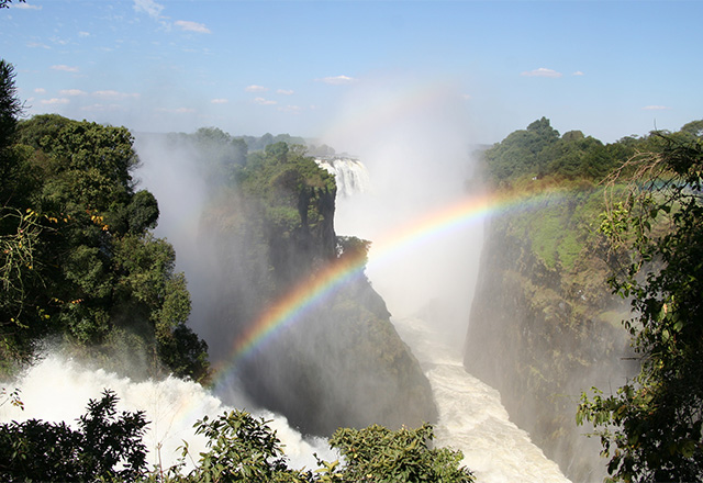 広大なビクトリアフォールズを楽しむには、モシ・オ・トゥニャ国立公園(ザンビア)からビクトリアフォールズ国立公園(ジンバブエ)に入園します。