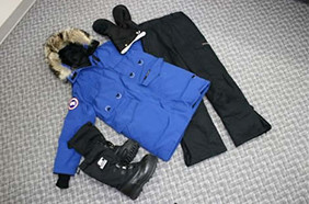 スキーウェアの上に着る専用の防寒具をレンタルが必須。