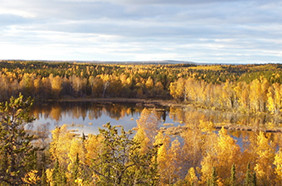 湖が凍らないため湖面に映る逆さオーロラを観賞するチャンスもあり、周辺のハイキングも楽しめます。